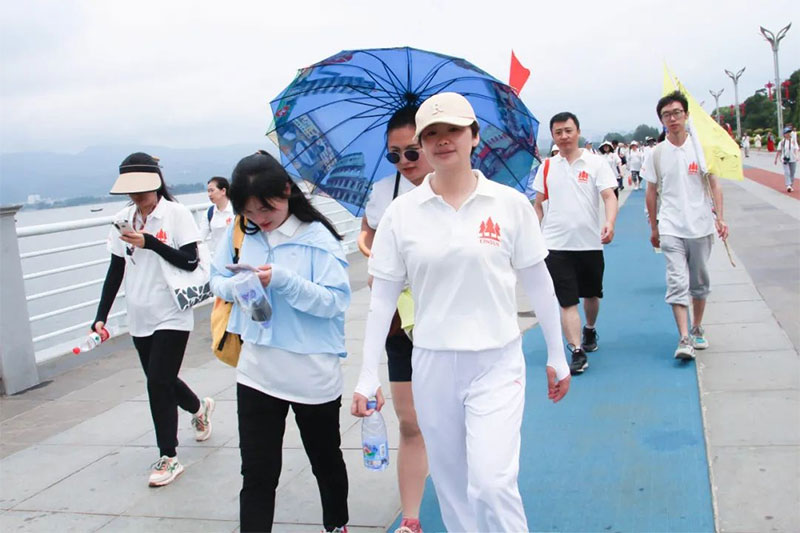 在這段長達15公里的徒步之旅中,大家走過了泥濘小路、石子路、柏油路,頂著悶熱的天氣、即將到來的大雨,然而任何困難都無法阻止我們前進的信念,依舊互相扶持、勉勵,一路上我們共同回憶愛因森教育的奮斗史。那些往昔歲月歷歷在目,這24年的奮斗歷程化為激勵我們前行的力量,不斷鞭笞愛因森人不忘初心使命,互幫互助,全力以赴踏上征途。