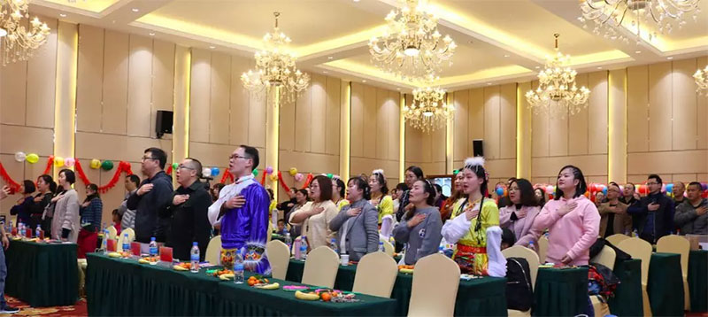 莊嚴的國歌聲穿透了年會會場,在場的全體教職工內心深處蕩漾著滿滿的愛國情懷。今天,我們共聚一堂,為祖國未來的發展貢獻自己的綿薄之力。